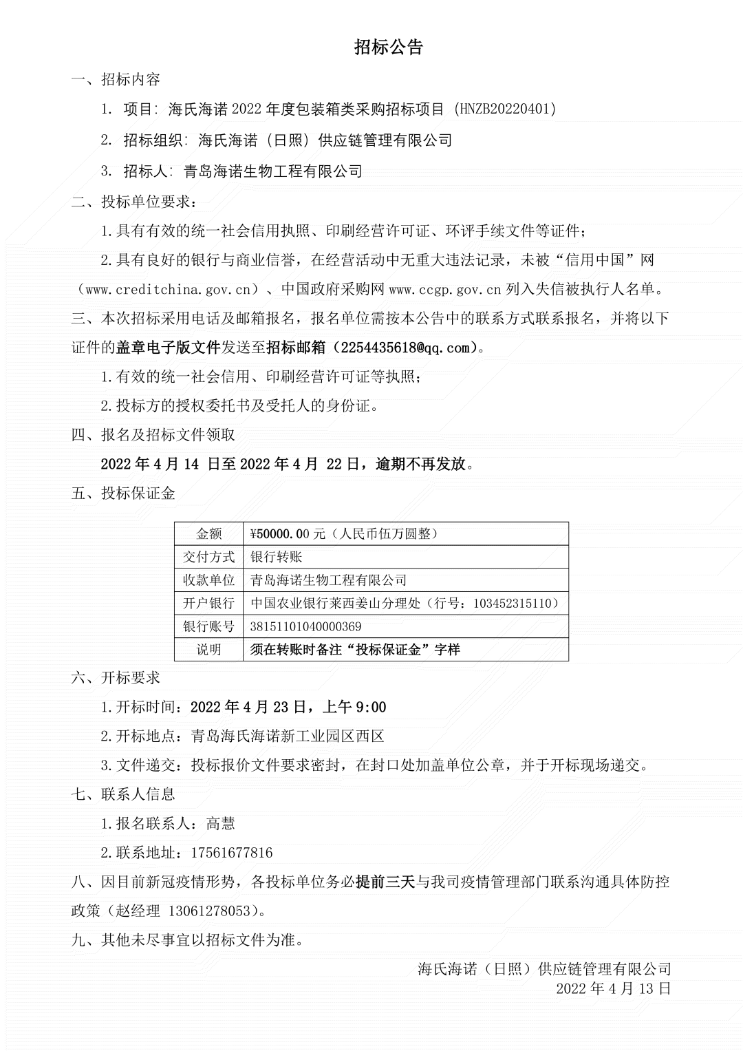 ks凯时2022年度包装箱类采购招标项目正式开始,届时我们将秉承公正、公平、公开、透明的招标原则,期待优秀供应商的广泛参与。具体招标细节如下: